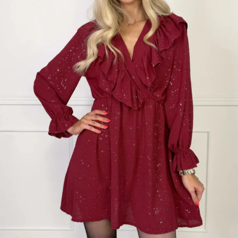 🔥 50 % Oferta limitada✨ 👗 Minivestido con cuello en V y volantes para mujer 💃💕
