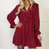 ELEGANTES VOLANTES: los románticos volantes que adornan el escote en V y los puños añaden un toque sofisticado y femenino al diseño. Este detalle realza el encanto general del vestido y crea un marco suave y elegante.