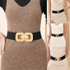 【Venta directa de fábrica】Cinturón de cuero elástico con hebilla dorada vintage para mujer
